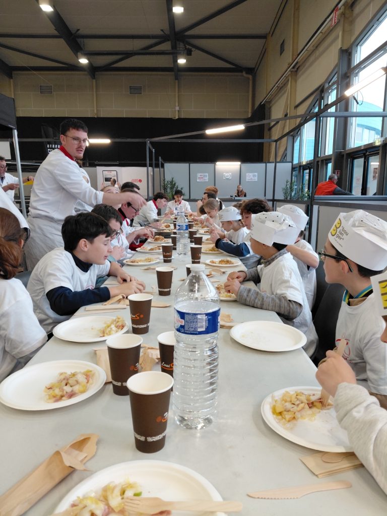 Lundi 1 décembre, nous sommes allés au salon de la gastronomie à Vannes. Nous avons préparé notre repas du midi. On a fait des salades, des cordons bleus et des nuggets. Puis, nous avons mangé avec les adultes. Ces adultes apprennent le métier de cuisinier au CFA de Vannes. On a visité le salon ensuite nous sommes rentrés à l’école en car.